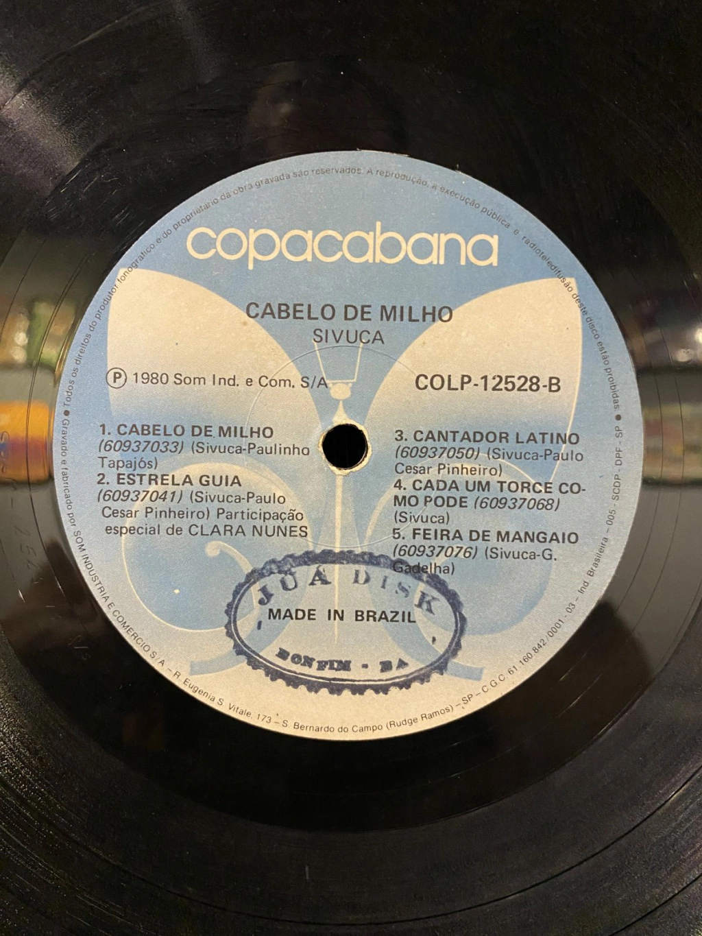 Vinil bem conservado com poucas marcas visíveis, mas que podem afetar a sonoridade de maneira discreta, algum leve chiado ou estalinho, sem pulos. Variando entre VG e VG+.